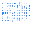 By rendering these characters, I immediately notice the characters not only have a variable height, they also have a variable vertical position. My plan to encode the characters with a fixed height of 5 will fail anyway since some characters are clearly taller than that, with the $ being 7 pixels tall while the . (period) is 1 pixel tall. The underscore, _ starts at the very bottom and the ' starts at the very top. The @ is not supported by the font, so I’m going to keep that character blank for now.