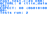 Let’s define font_render_character_1bpp, returning 0, which is the minimum definition that compiles. I am going to implement this using Test-Driven-Development: